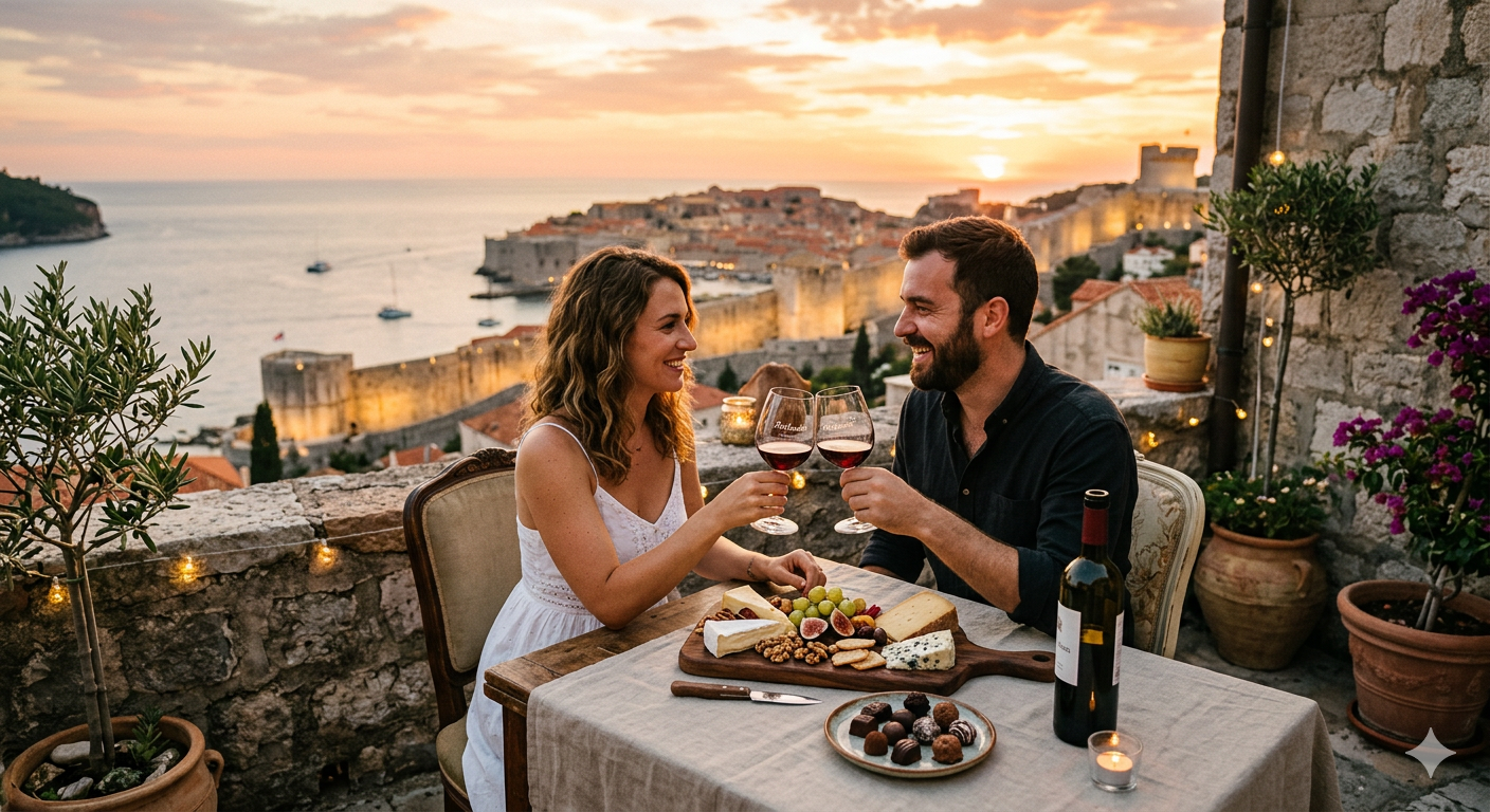 "חוויה זוגית עוצמתית בשעות הזהב. עצירה בנקודת תצפית פנורמית מול חומות העיר, עם בקבוק יין משובח, פלטת גבינות ושוקולדים."